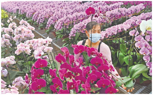▲1月11日,花卉基地的员工在搬运蝴蝶兰,准备投放市场。近日,陕西省西安市蓝田县洩湖镇一花卉基地的蝴蝶兰竞相绽放,不少商家前来选购。根据疫情防控实际,西安市各区县因地制宜支持企业有序复工复产。 新华社记者陶明摄