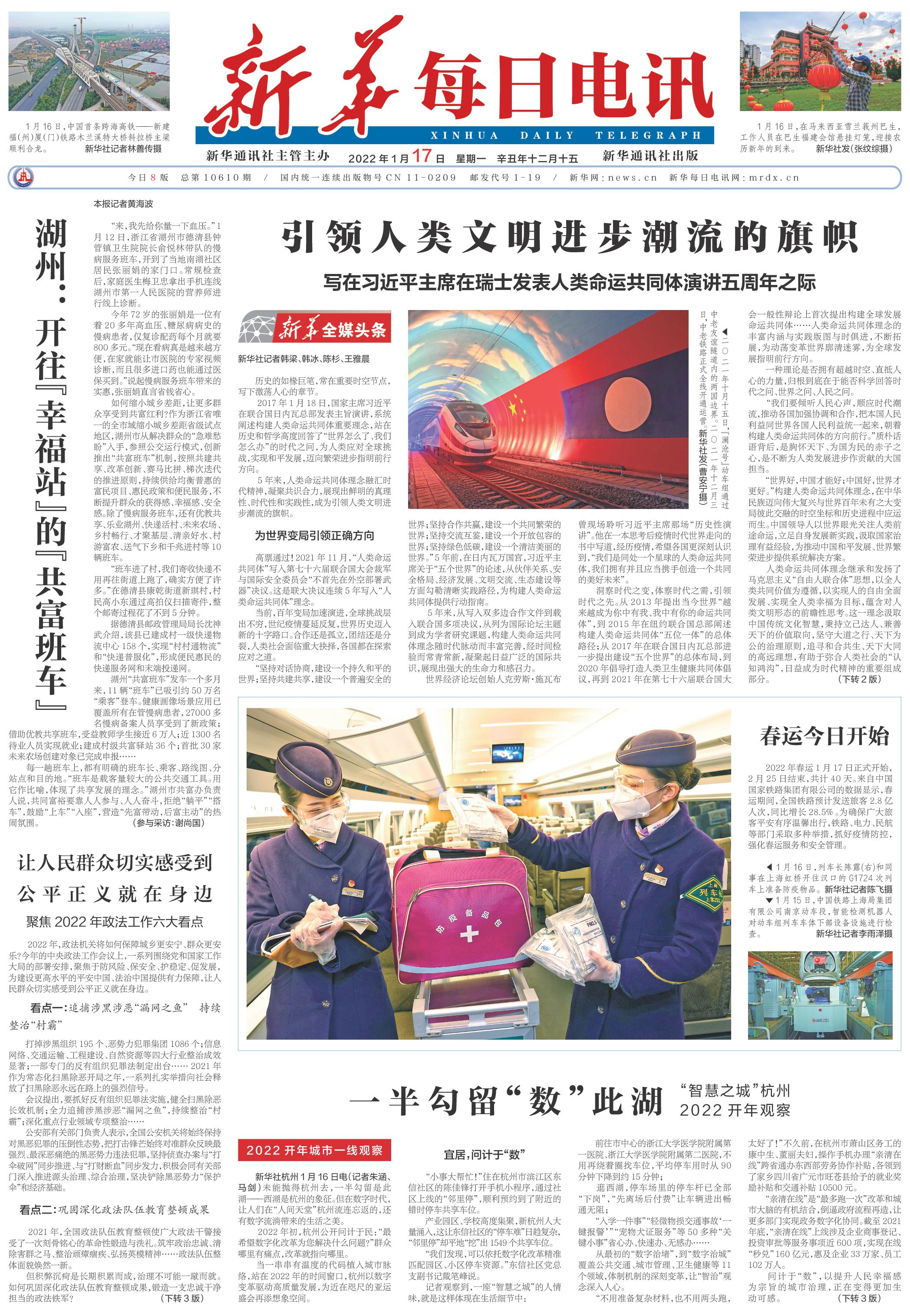 | ( 2022-01-17 ) 稿件来源:新华每日电讯 要 闻 |