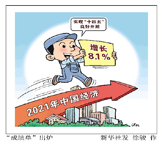 新华社北京1月17日电(记者魏玉坤、王雨萧)2021年中国经济“成绩单”出炉。国家统计局17日发布数据,2021年,中国国内生产总值(GDP)为1143670亿元,按不变价格计算,比上年增长8.1%,两年平均增长5.1%,实现“十四五”良好开局。