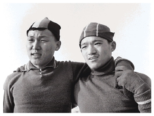 ▲1962年全国速滑和花样滑冰锦标赛的男子速滑全能冠军王金玉(右)和男子速滑全能第二名罗致焕。