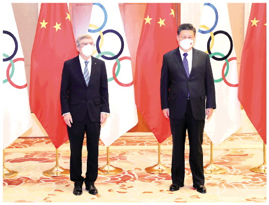 1月25日,国家主席习近平在北京钓鱼台国宾馆会见国际奥委会主席巴赫。