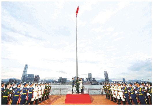 1997年7月1日,驻香港部队第一次在中环营区升起五星红旗,洗刷百年民族耻辱。在2022年虎年春节到来之际,驻军首次在中区军用码头举行升国旗仪式,充分展示驻军官兵威武文明形象,充分彰显这支光荣部队牢记初心使命,坚决贯彻“一国两制”伟大方针、坚决维护国家主权安全和香港繁荣稳定的决心意志。