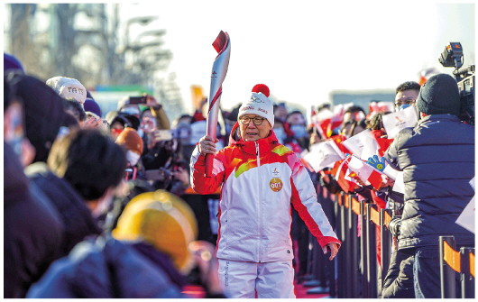 2月2日,第一棒火炬手罗致焕在火炬传递中。当日,北京冬奥会火炬在北京奥林匹克森林公园传递。