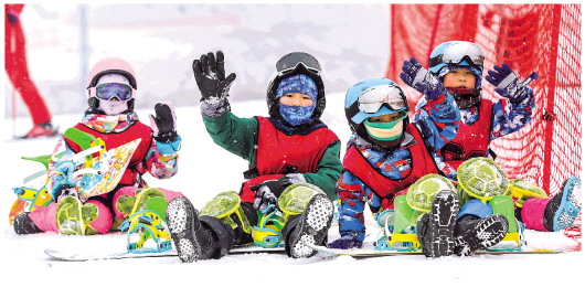 1月21日,小朋友在内蒙古乌兰察布市大河湾滑雪场体验滑雪。 新华社记者李志鹏摄 |