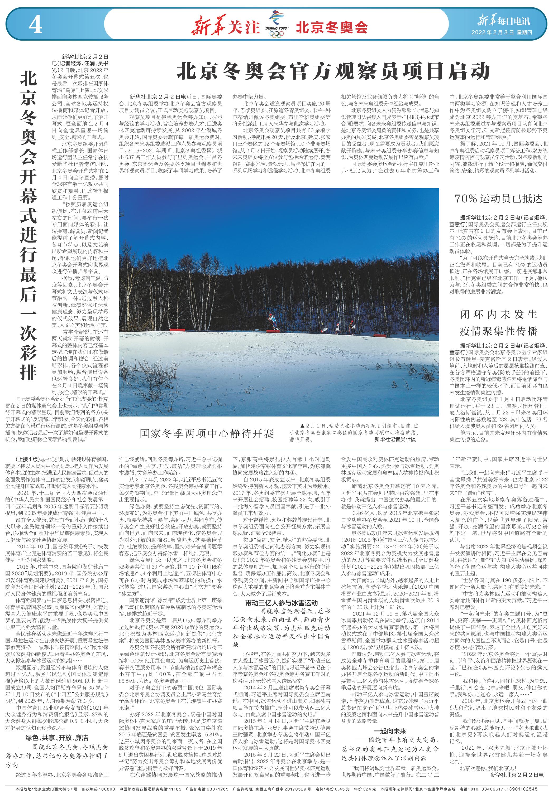 | ( 2022-02-03 ) 稿件来源:新华每日电讯 新华关注·北京冬奥会 |