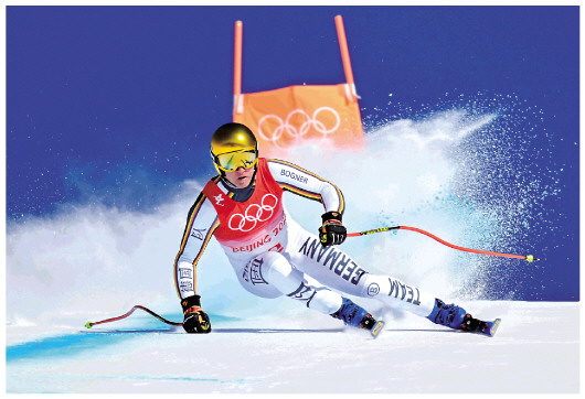 2月3日,德国选手罗梅德·鲍曼在训练中。当日,北京冬奥会高山滑雪男子滑降项目第一次训练在北京延庆国家高山滑雪中心举行。 新华社记者张晨霖摄 |
