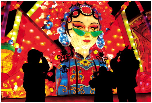 ▲2月2日,市民在迎春灯会上拍照。春节期间,在沈阳市棋盘山关东影视城内举办的2022中国沈阳迎春灯会吸引众多市民参观。展出的3万余盏特色花灯采用四川自贡传统工艺,由200余位能工巧匠结合东北民俗特色手工制作完成。
