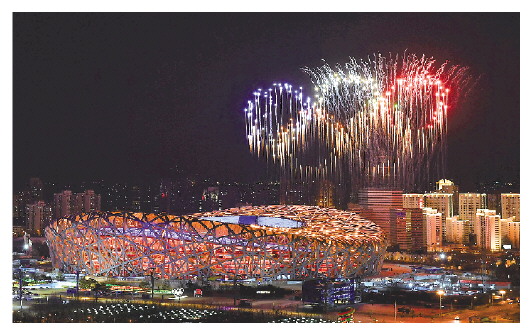 2月4日晚,第二十四届冬季奥林匹克运动会开幕式在北京国家体育场举行。这是焰火表演。 新华社记者李鑫摄