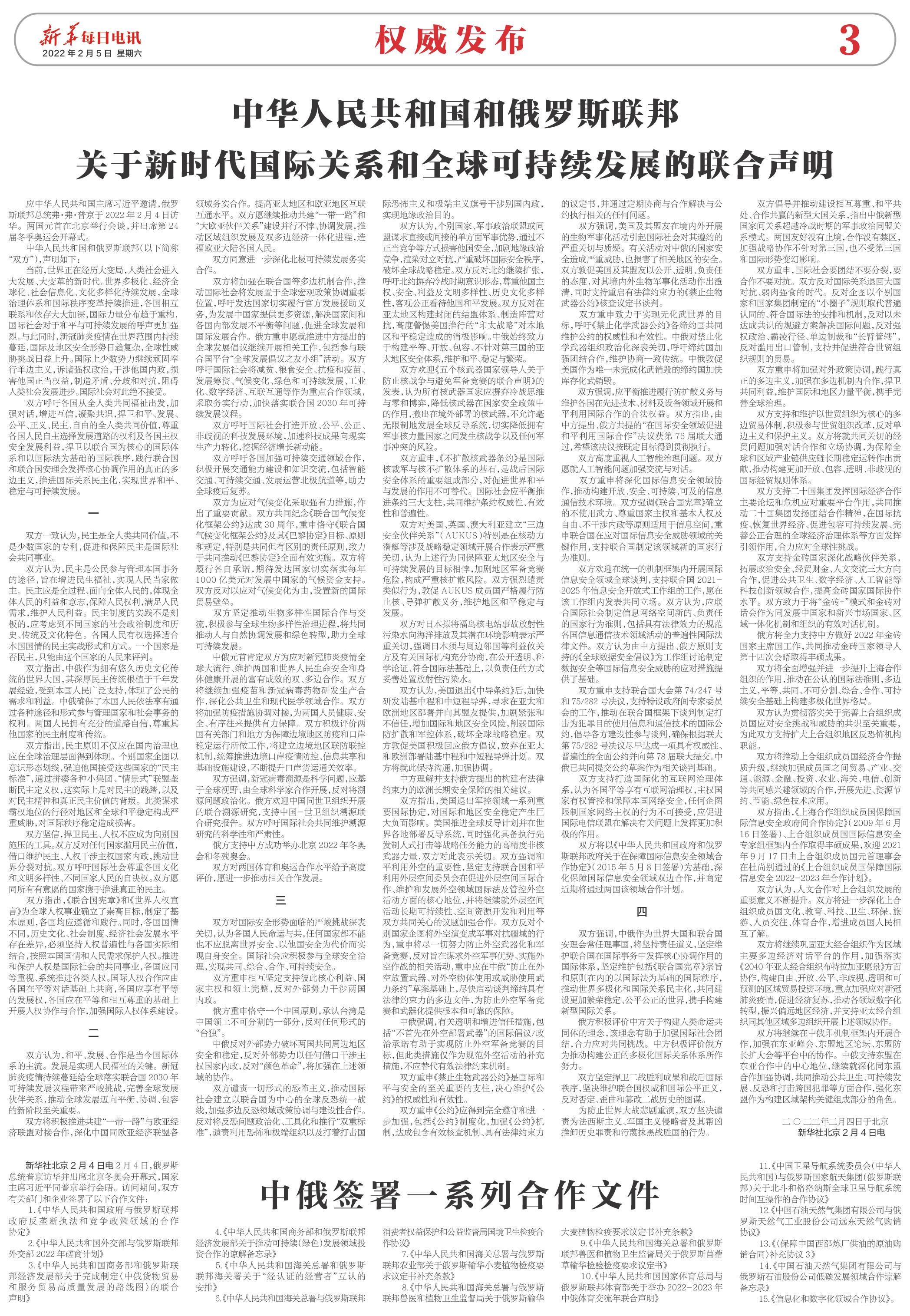 | ( 2022-02-05 ) 稿件来源:新华每日电讯 权威发布 |