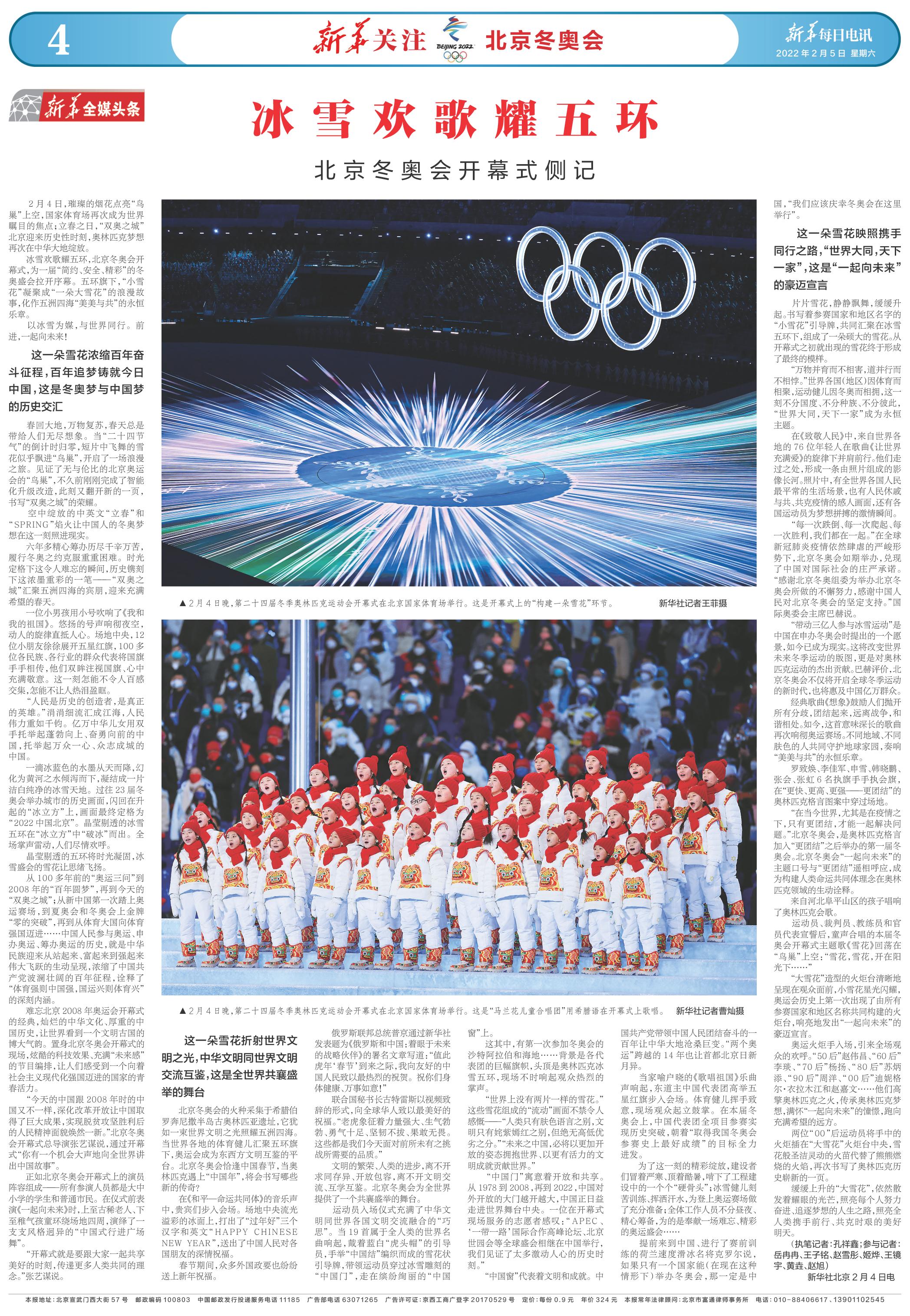 2月4日,璀璨的烟花点亮“鸟巢”上空,国家体育场再次成为世界瞩目的焦点;立春之日,“双奥之城”北京迎来历史性时刻,奥林匹克梦想再次在中华大地绽放。