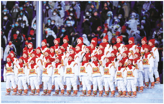 ▲2月4日晚,第二十四届冬季奥林匹克运动会开幕式在北京国家体育场举行。这是“马兰花儿童合唱团”用希腊语在开幕式上歌唱。
