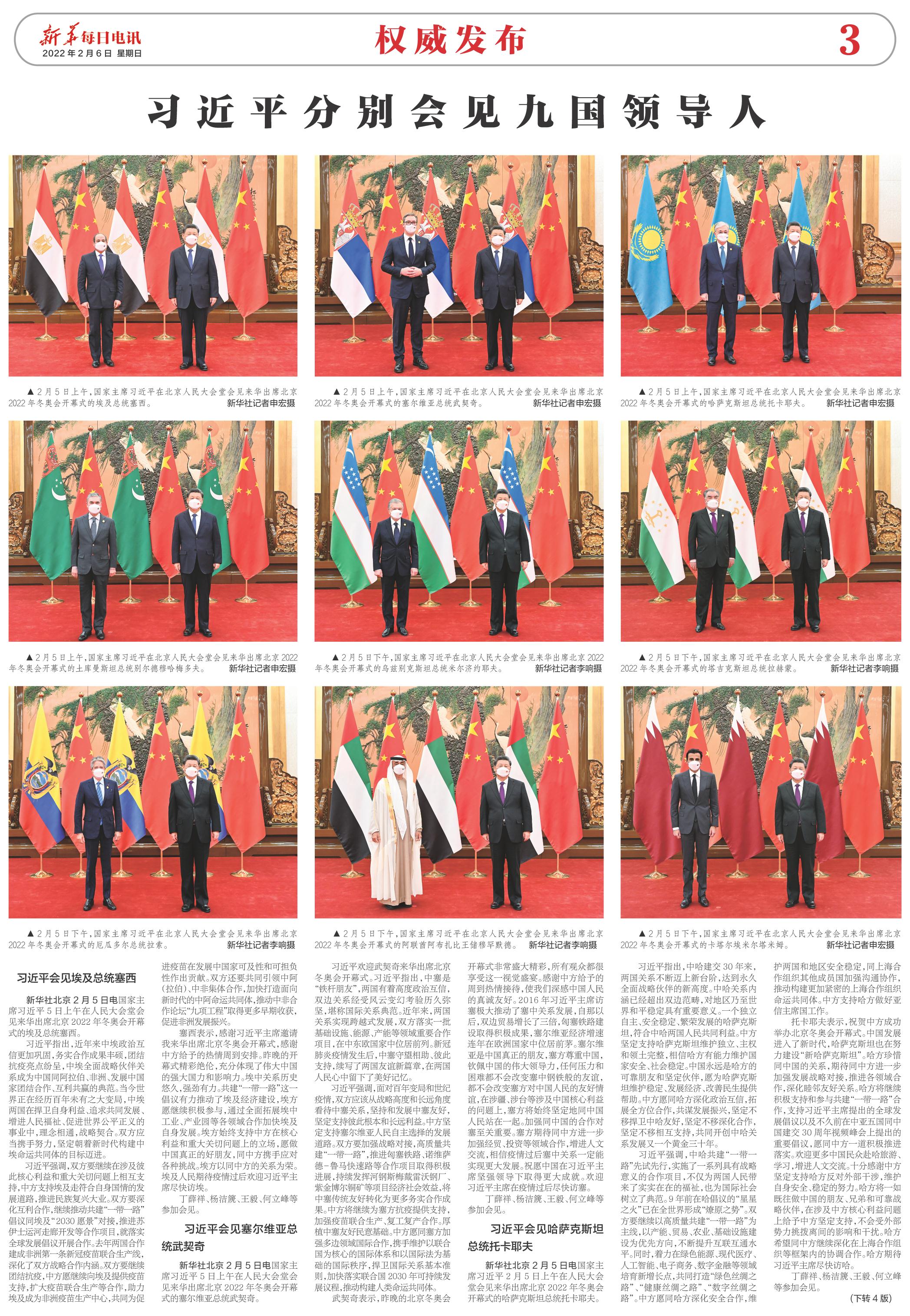 新华社北京2月5日电国家主席习近平5日上午在人民大会堂会见来华出席北京2022年冬奥会开幕式的塞尔维亚总统武契奇。