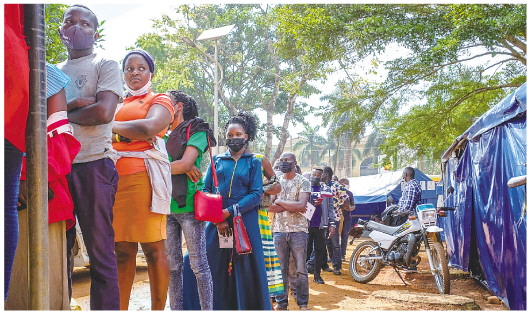 ▲2月8日,人们在乌干达坎帕拉一处健康中心排队等待接种新冠疫苗。世界卫生组织7日公布的最新数据显示,全球累计新冠确诊病例达394381395例。 新华社发