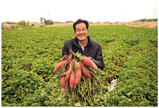 ▲2月9日,广东省陆丰市碣石镇戴厝村村民戴胜友在田里收获甘薯。 新华社记者梁旭摄 |
