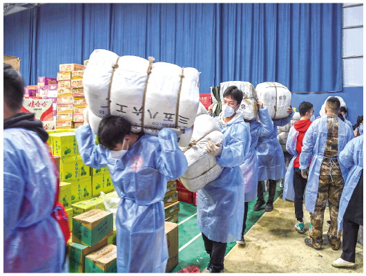 ▲2月11日,在德保县一处仓库,工作人员在搬运抗疫物资。近日,各类生活和医疗物资持续运抵广西百色市德保县,目前当地抗疫保障物资供应充足。