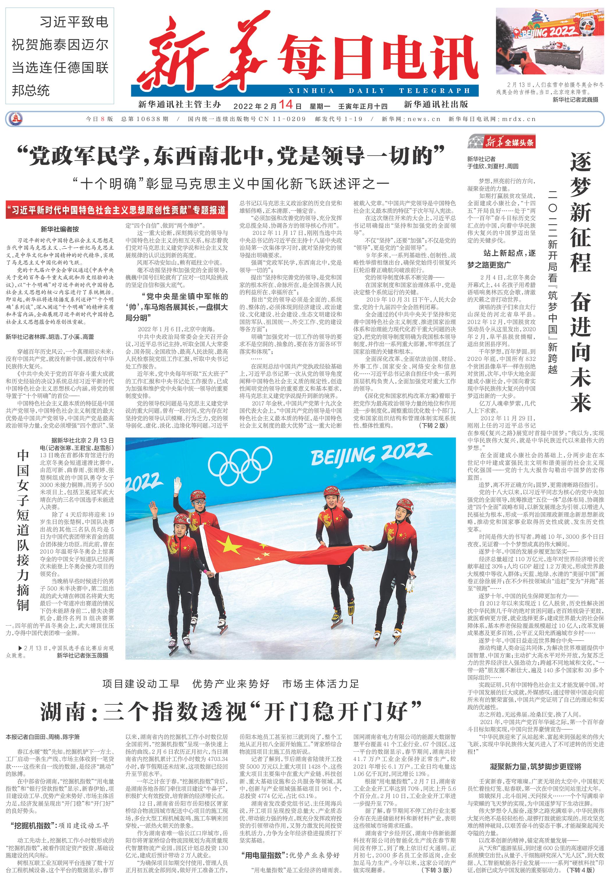 | ( 2022-02-14 ) 稿件来源:新华每日电讯 要 闻 |