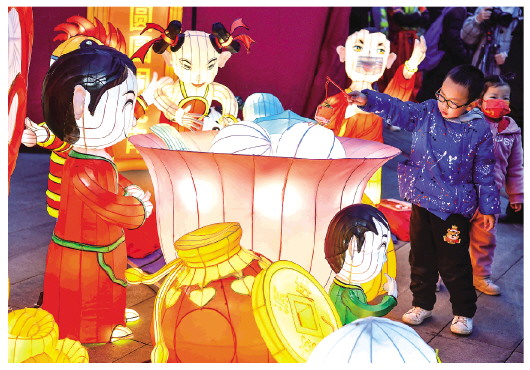 2月15日,小朋友在贵州省贵阳市南明区青云路赏花灯。随着元宵节到来,各地举行丰富多彩的活动,热热闹闹庆佳节。新华社记者杨文斌摄
