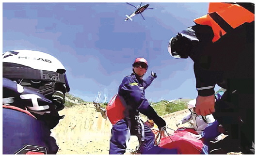 高山雪上运动空中救援队在工作。 新华社记者夏子麟摄 |