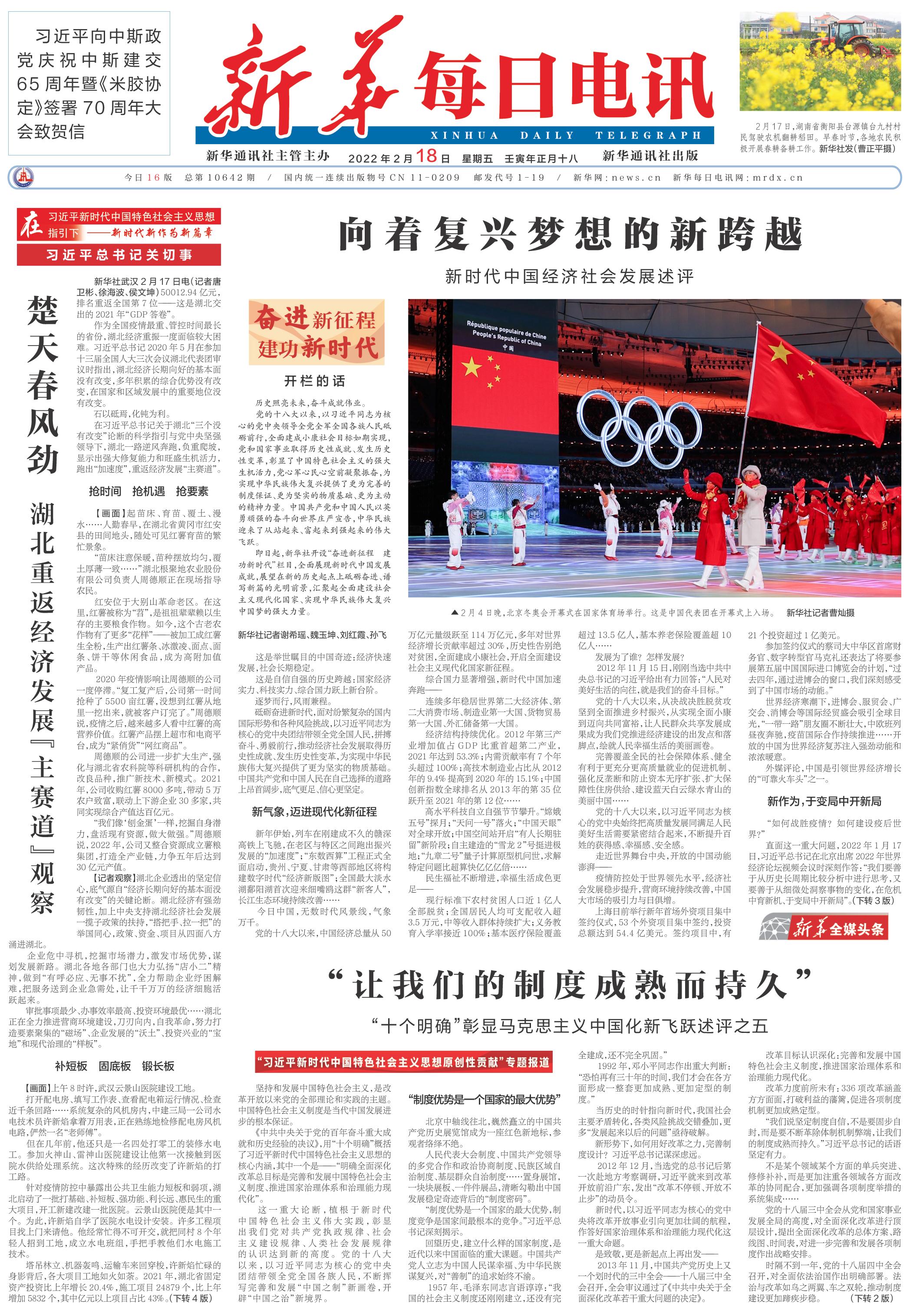 在习近平新时代中国特色社会主义思想指导下,我们一定能够坚持好、巩固好、完善好、发展好我国国家制度和国家治理体系,不断把制度优势更好转化为治理效能,为实现中华民族伟大复兴创造新的更大辉煌!(记者赵晓辉、林晖、刘开雄、王琦、李延霞、刘慧) 新华社北京2月17日电