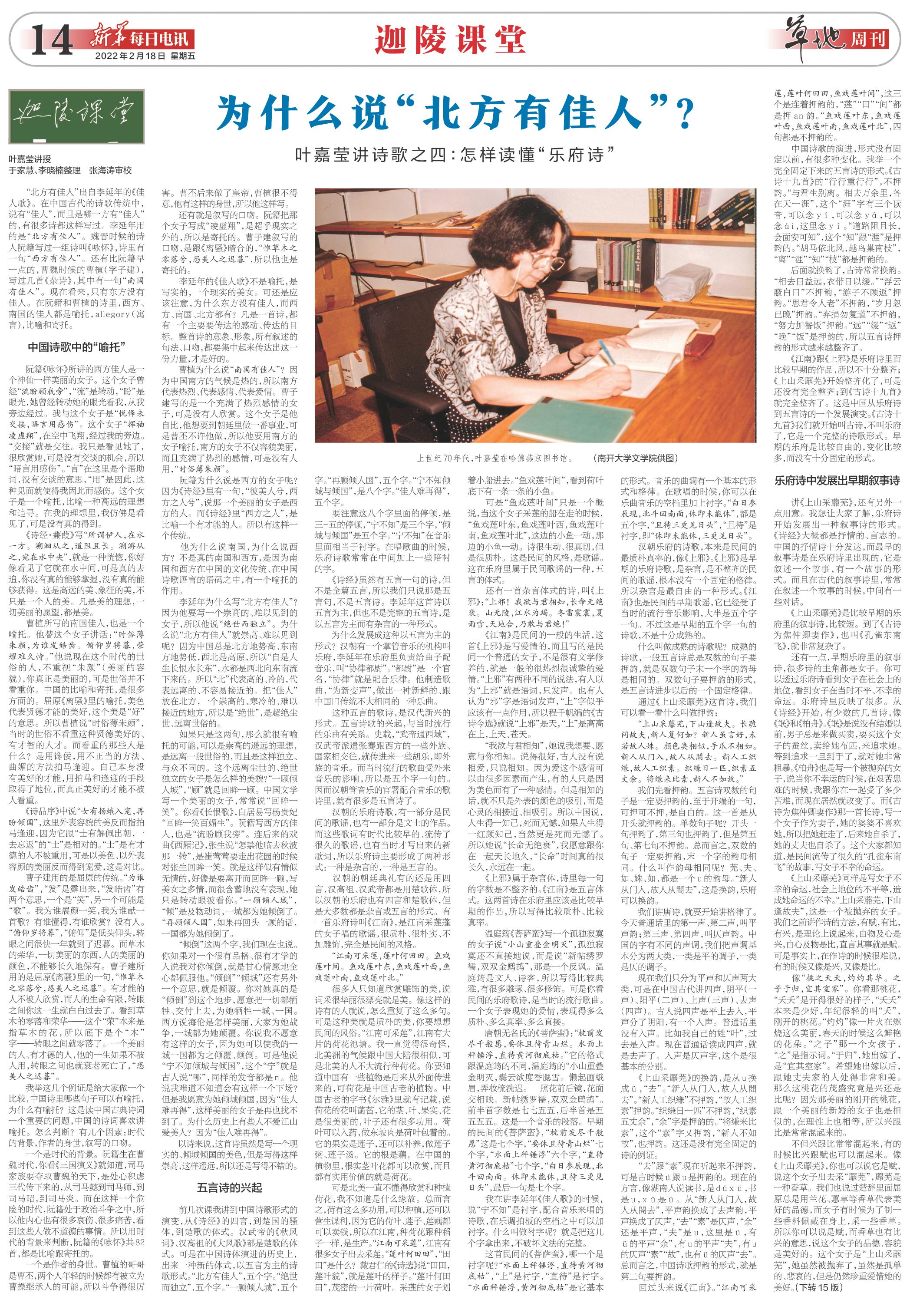 不但兴跟比常常混起来,有的时候比兴跟赋也可以混起来。像《上山采蘼芜》,你也可以说它是赋,说这个女子出去采“蘼芜”,蘼芜是一种香草。我们也说过楚辞里面屈原总是用兰花、蕙草等香草代表美好的品德,而女子有时候为了制一些香料佩戴在身上,采一些香草。所以你可以说是赋,而香草也有比兴的意思,说这个女子的品德、容貌是美好的。这个女子是“上山采蘼芜”,她虽然被抛弃了,虽然是孤单的、悲哀的,但是仍然珍重爱惜她的美好。(下转15版)
