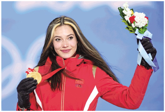 2月18日,冠军中国队选手谷爱凌在奖牌颁发仪式上。新华社记者薛玉斌摄 |