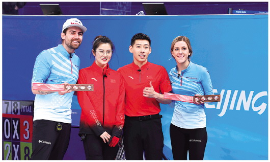 “这些徽章太漂亮了,且非常独特,它们将在我的书桌上摆放很久很久。”5日下午,冰壶项目混双循环赛赛后,美国队队员克里斯托弗·普利斯收到中国队队员范苏圆、凌智赠送的“冰墩墩”奥运纪念徽章。双方合影留念,喜悦之情溢于言表。