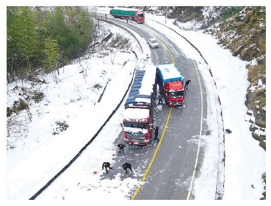 动辄20多厘米厚的积雪,给南方山区交通出行带来极大挑战。