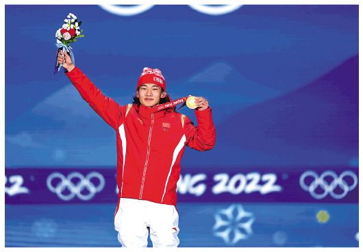 当真正站到“家门口”的冬奥舞台上,这名中国小将敢打敢拼,在实力并不占优势的坡面障碍技巧项目上,“用对待决赛的态度做好每一滑”,最终摘得银牌。几天后,他又在主项大跳台项目上顶住众多世界好手的挑战,提前一轮锁定金牌。