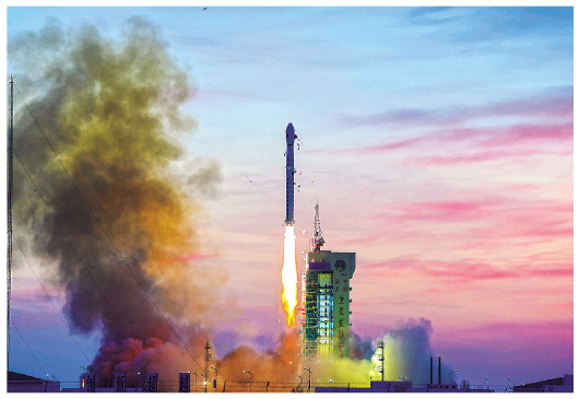 ▲2月27日7时44分,我国在酒泉卫星发射中心用长征四号丙运载火箭,成功将L-SAR 01组B星发射升空。发射任务获得圆满成功。    新华社发(汪江波摄)