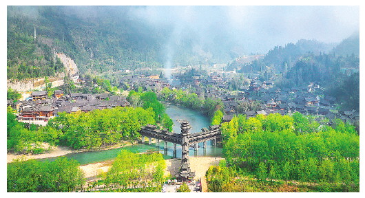 捞车村隐藏在湘西大山里,一座“Y”型木结构凉亭桥,横跨两河交汇处,连着三个土家寨子,春雨连绵时,云雾缭绕,山水如画,当地人更愿称呼这里为“惹巴拉”。在土家语里,“惹巴拉”意为“美丽的地方”。