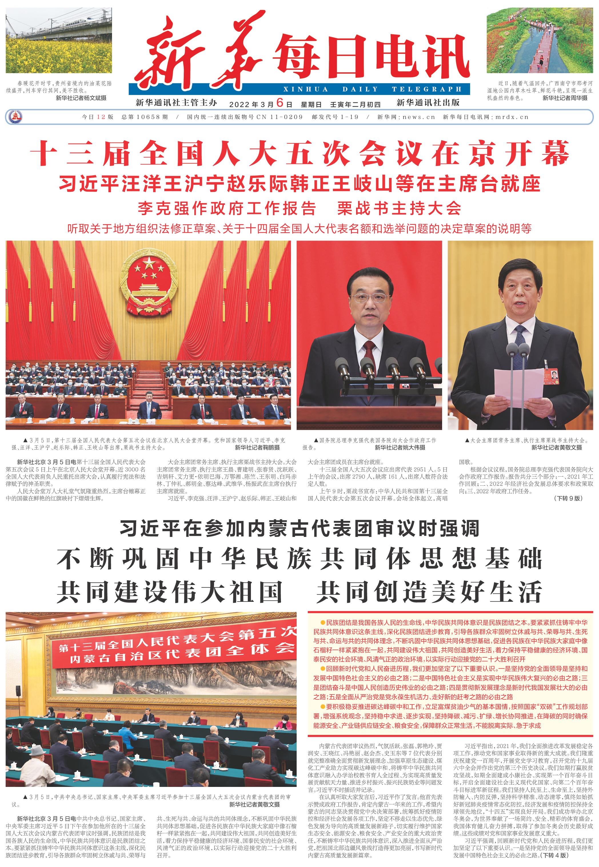 | ( 2022-03-06 ) 稿件来源:新华每日电讯 要 闻 |