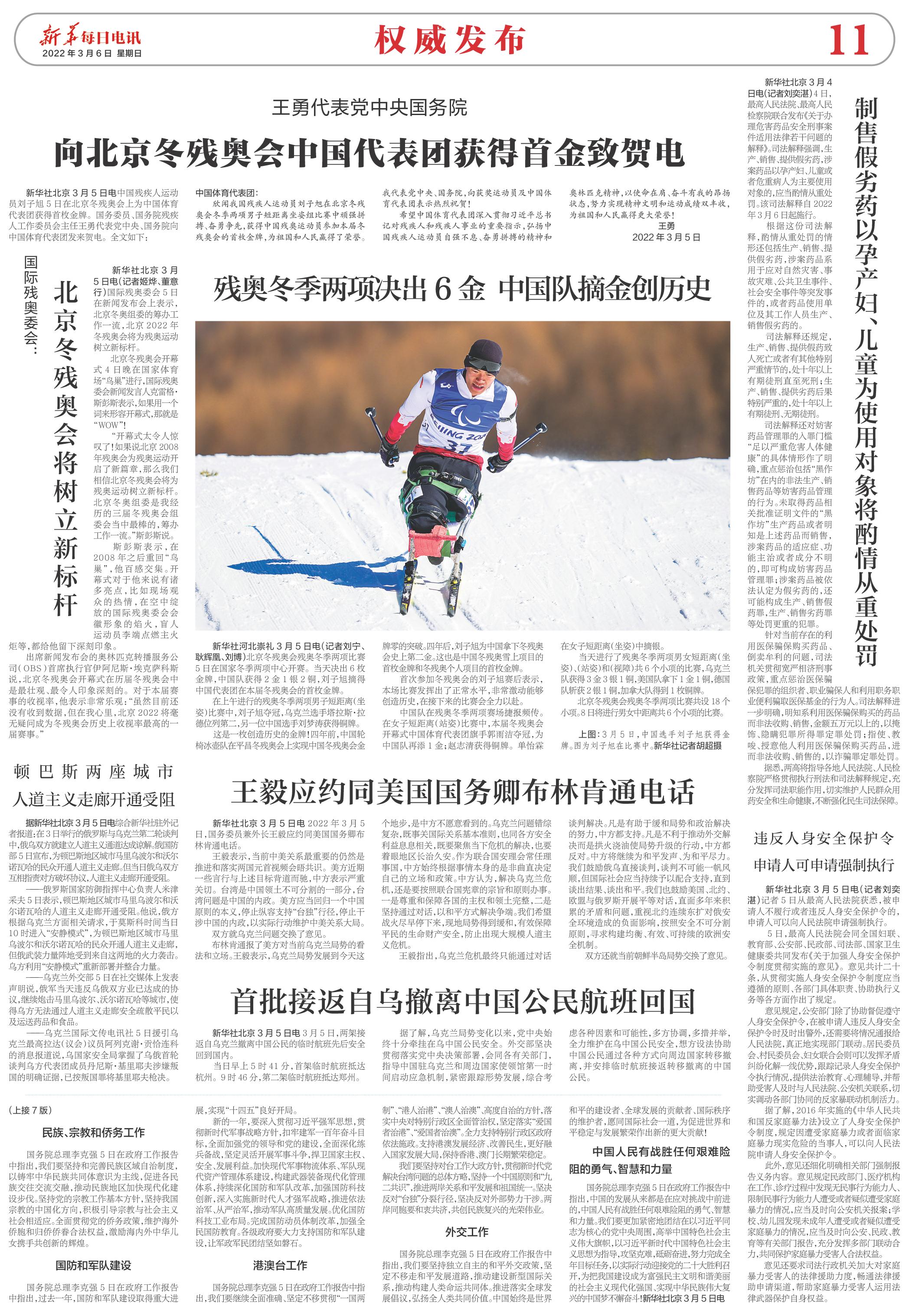 新华社北京3月5日电3月5日,两架接返自乌克兰撤离中国公民的临时航班先后安全回到国内。