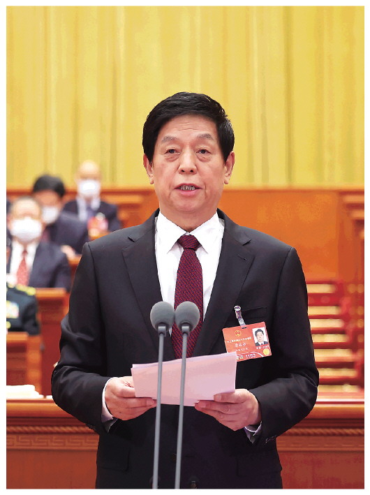 大会主席团常务主席、执行主席栗战书主持闭幕会并发表讲话。 新华社记者黄敬文摄