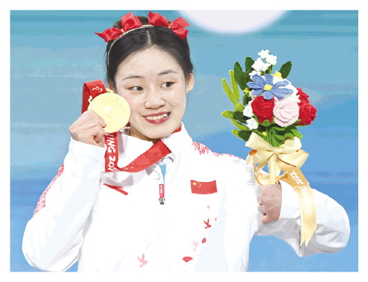 ▲3月11日,冠军中国选手张梦秋在残奥高山滑雪女子大回转(站姿)比赛颁奖仪式上。 新华社记者李嘉南摄