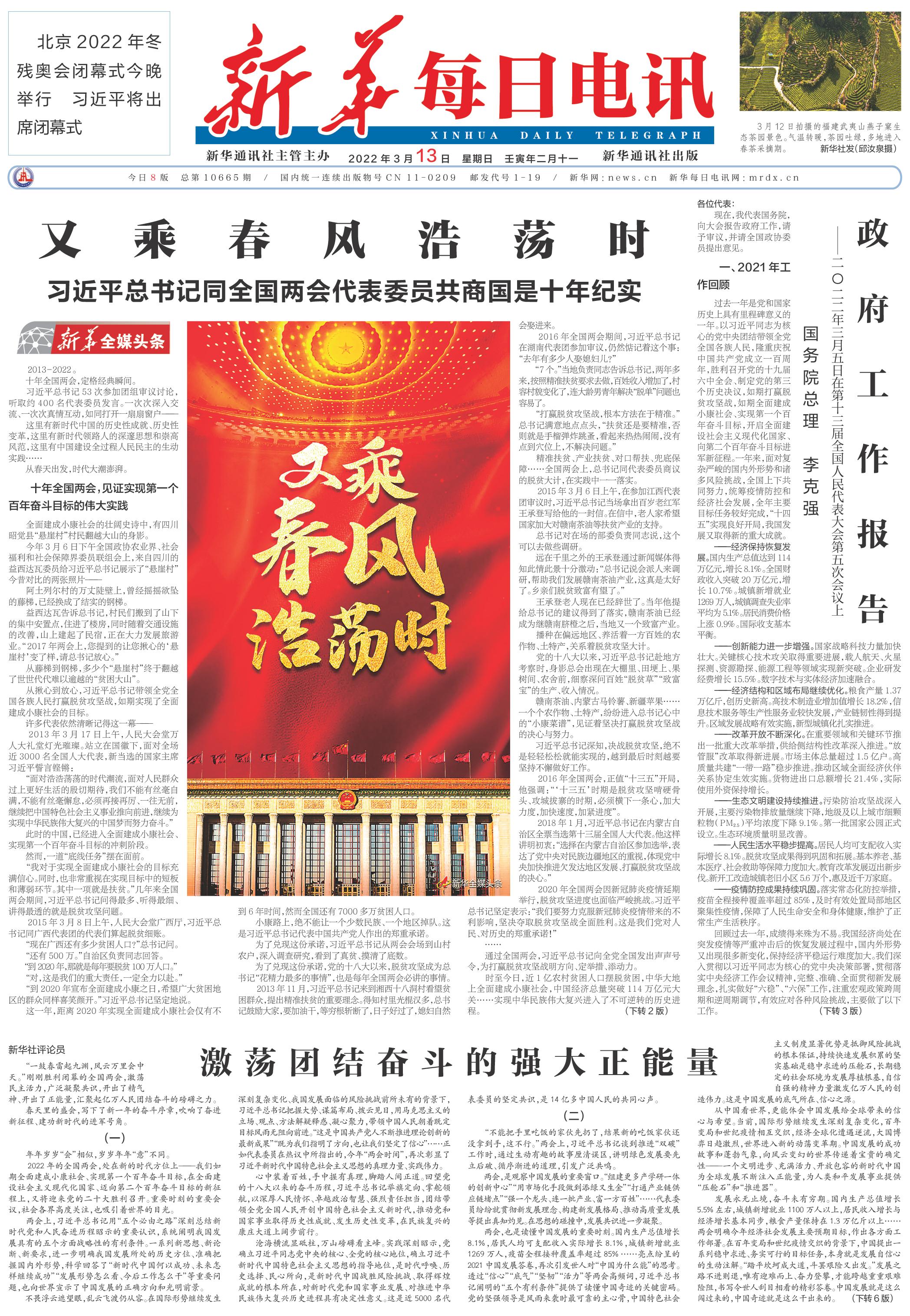 | ( 2022-03-13 ) 稿件来源:新华每日电讯 要 闻 |