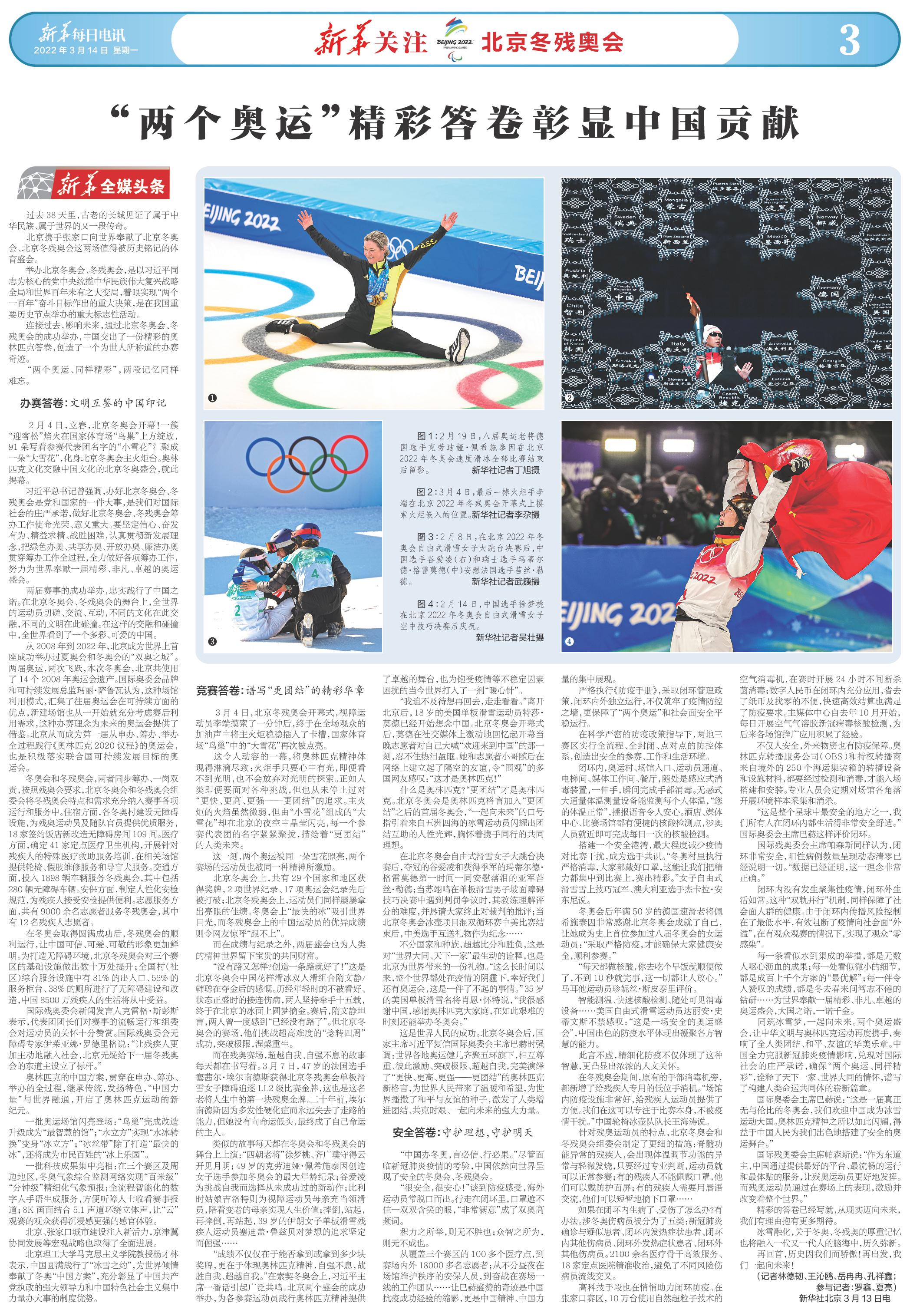 “中国办冬奥,言必信、行必果。”尽管面临新冠肺炎疫情的考验,中国依然向世界呈现了安全的冬奥会、冬残奥会。