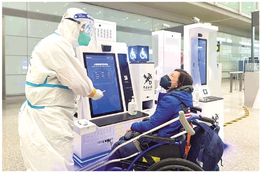 ▲3月15日,首都机场海关关员帮助涉冬残奥人员进行健康申报。随着北京2022年冬残奥会闭幕,境外涉冬残奥人员从北京首都国际机场陆续踏上返程之路。