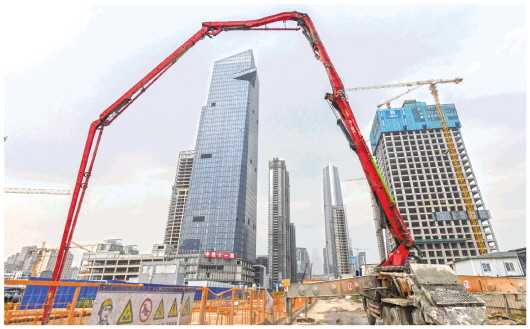 3月16日,大型机械在武汉市武昌滨江核心区地下空间环路工程工地施工。