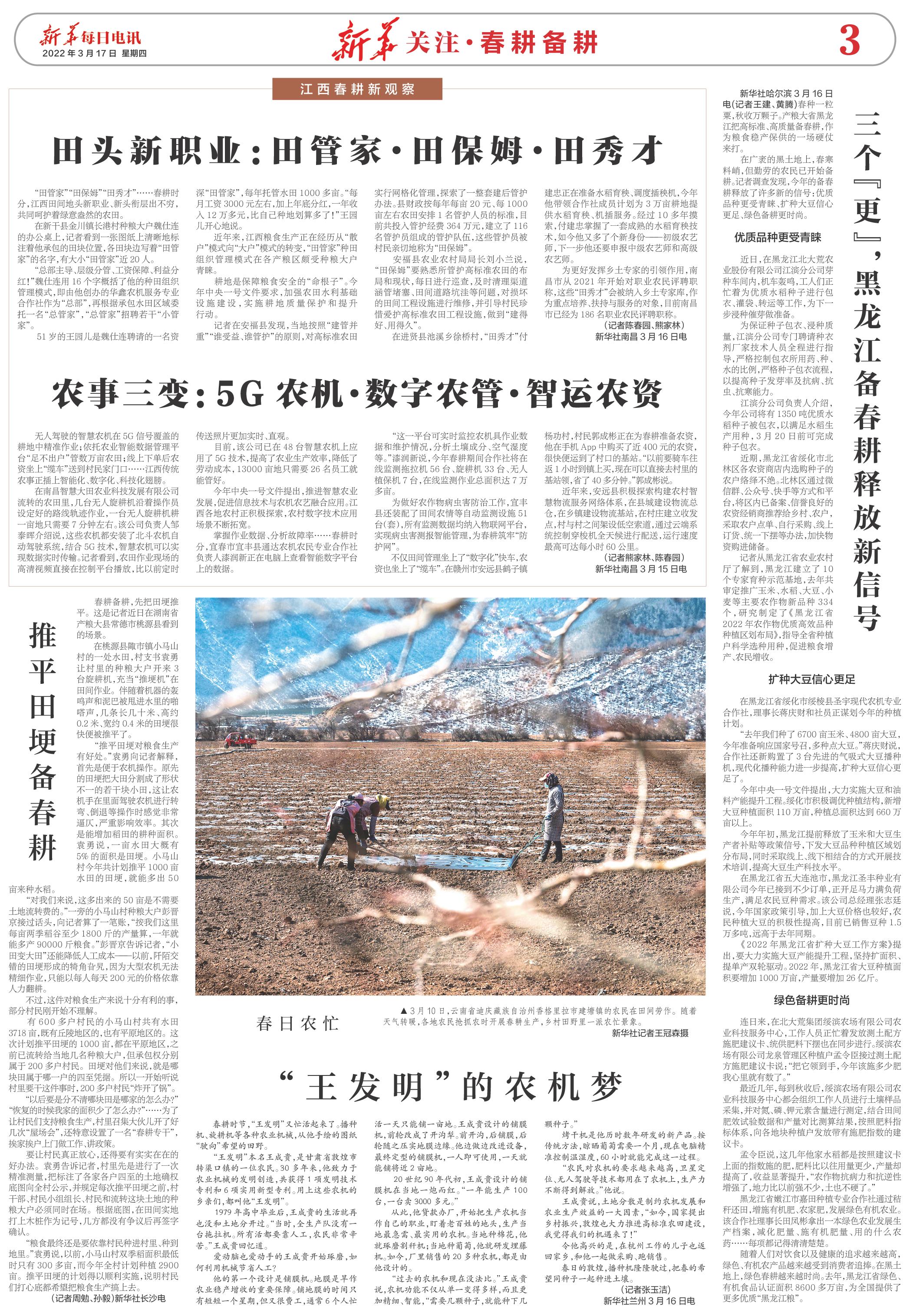 | ( 2022-03-17 ) 稿件来源:新华每日电讯 新华关注·春耕备耕 |