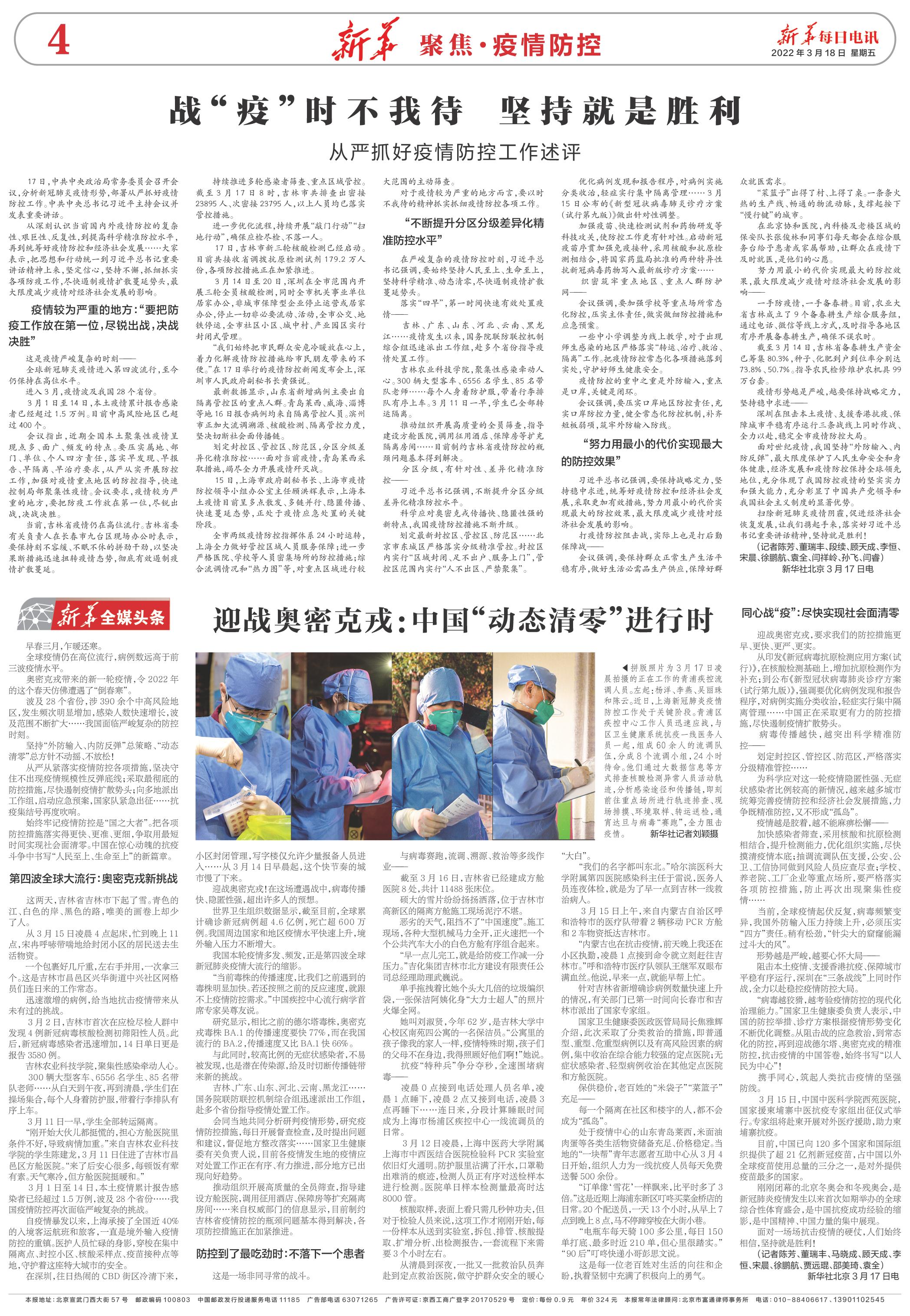 | ( 2022-03-18 ) 稿件来源:新华每日电讯 新华聚焦·疫情防控 |