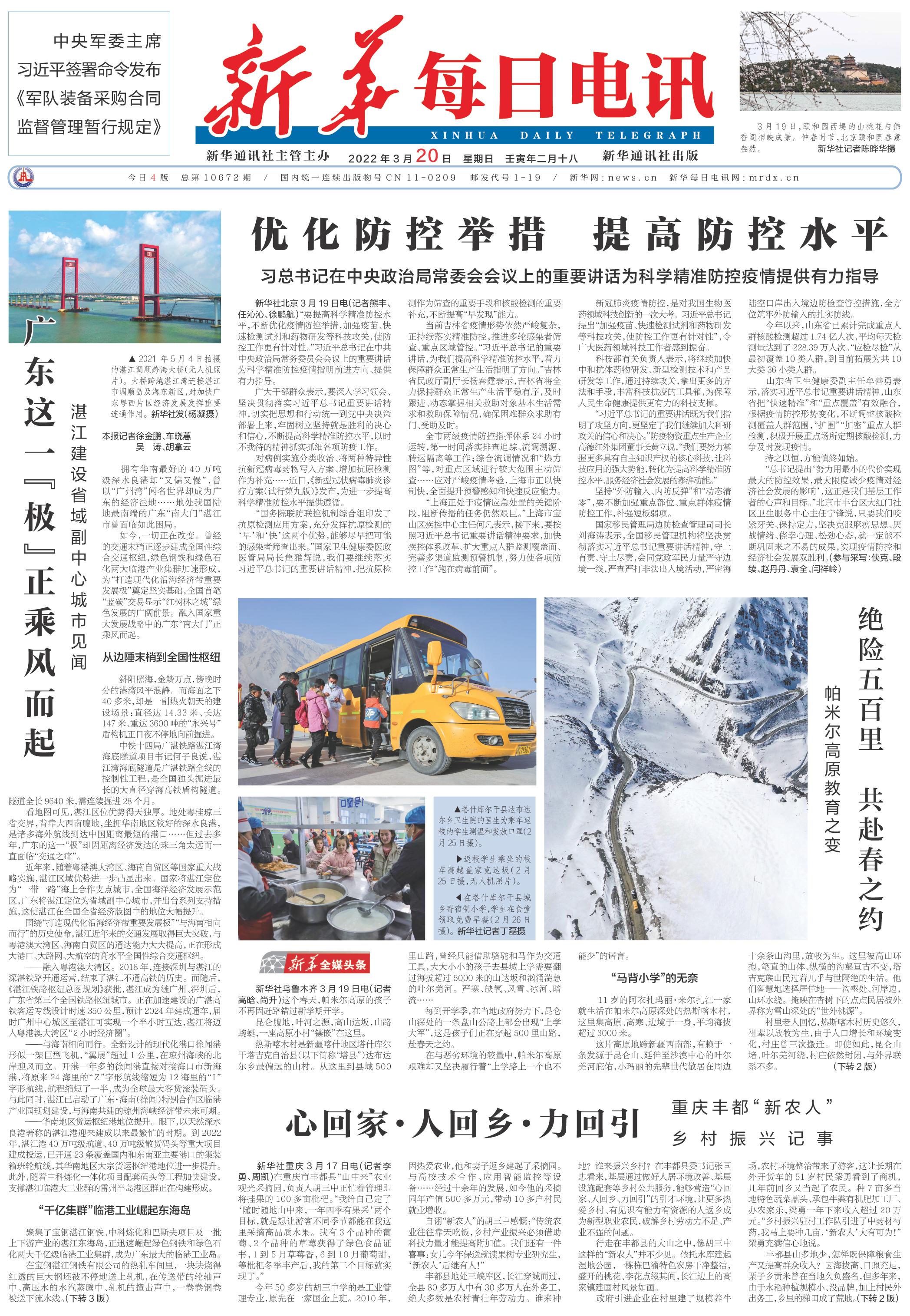 | ( 2022-03-20 ) 稿件来源:新华每日电讯 要 闻 |