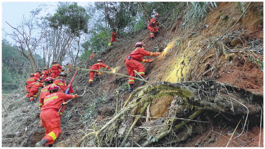22日17时许,500多名消防和武警人员、民兵携带工具,进入现场搜寻黑匣子。