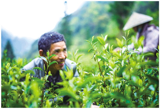 近日,贵州省铜仁市石阡县种植的春茶进入采摘高峰期。石阡县素有“中国苔茶之乡”的美誉,有较长的茶叶栽种历史。 新华社记者陶亮摄