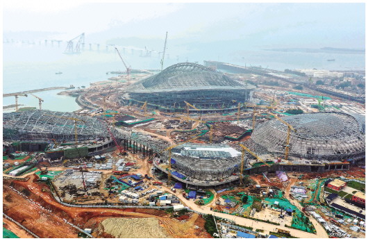 ▲3月26日拍摄的厦门新体育中心建设现场(无人机照片)。厦门新体育中心位于福建省厦门市翔安新城片区,由凤凰体育馆、白海豚游泳馆等场馆组成,是厦门东部体育会展新城的重要组成部分。连日来,施工人员抢抓时间,在积极做好防疫的同时,全面推进项目建设。