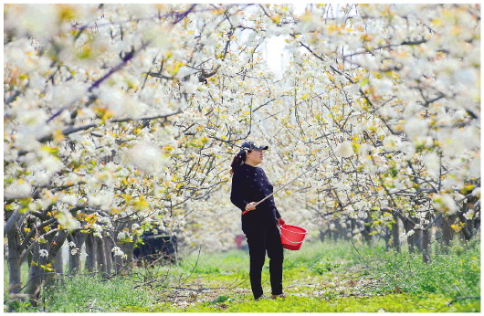 说话间,峡谷低云压境,雨点淅淅沥沥地落入田地间,滴入桃林里。仁增旺姆加快步伐,将最后一把种子撒落在田野里,春耕仪式在绵绵细雨中落下帷幕。