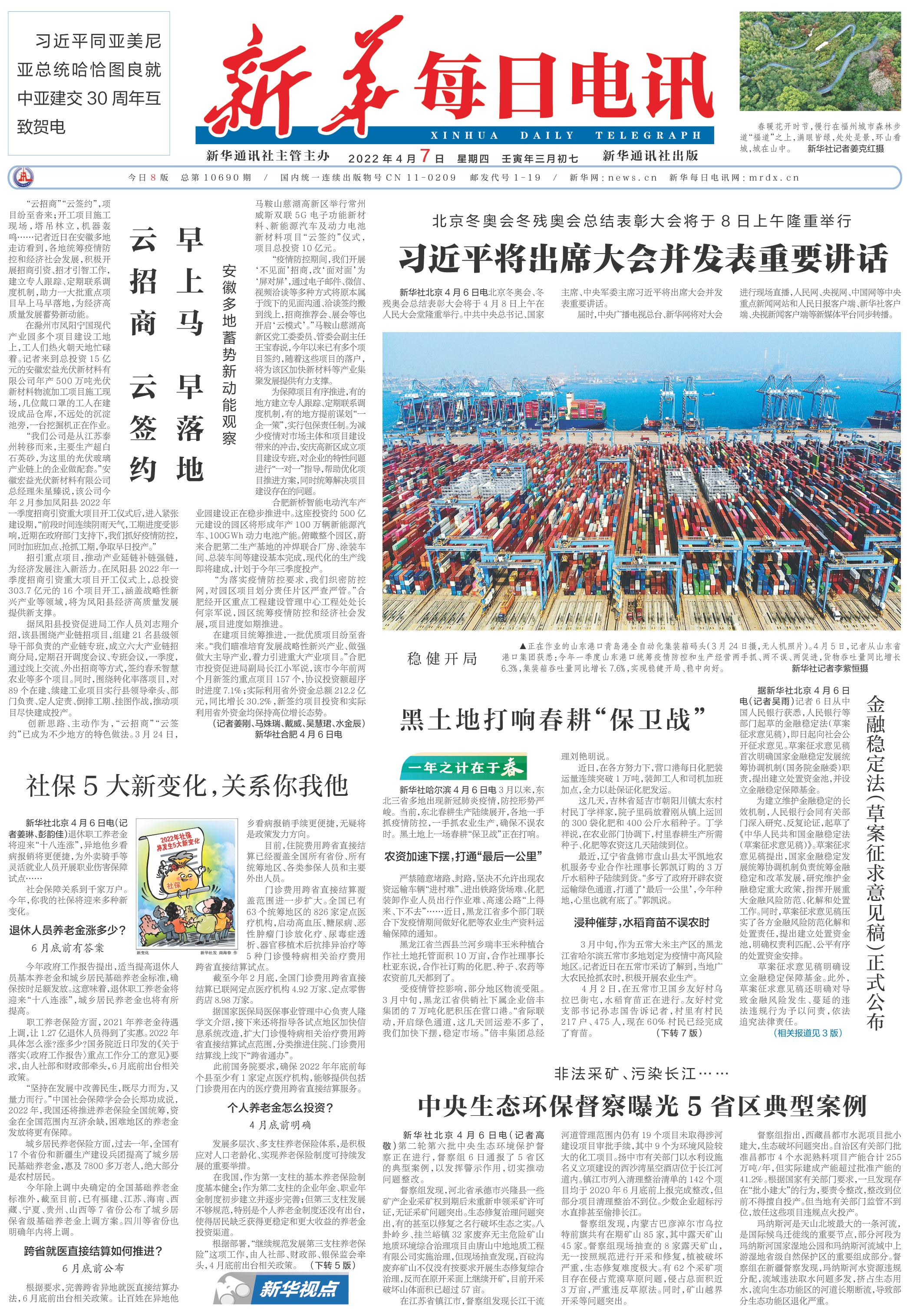 | ( 2022-04-07 ) 稿件来源:新华每日电讯 要 闻 |