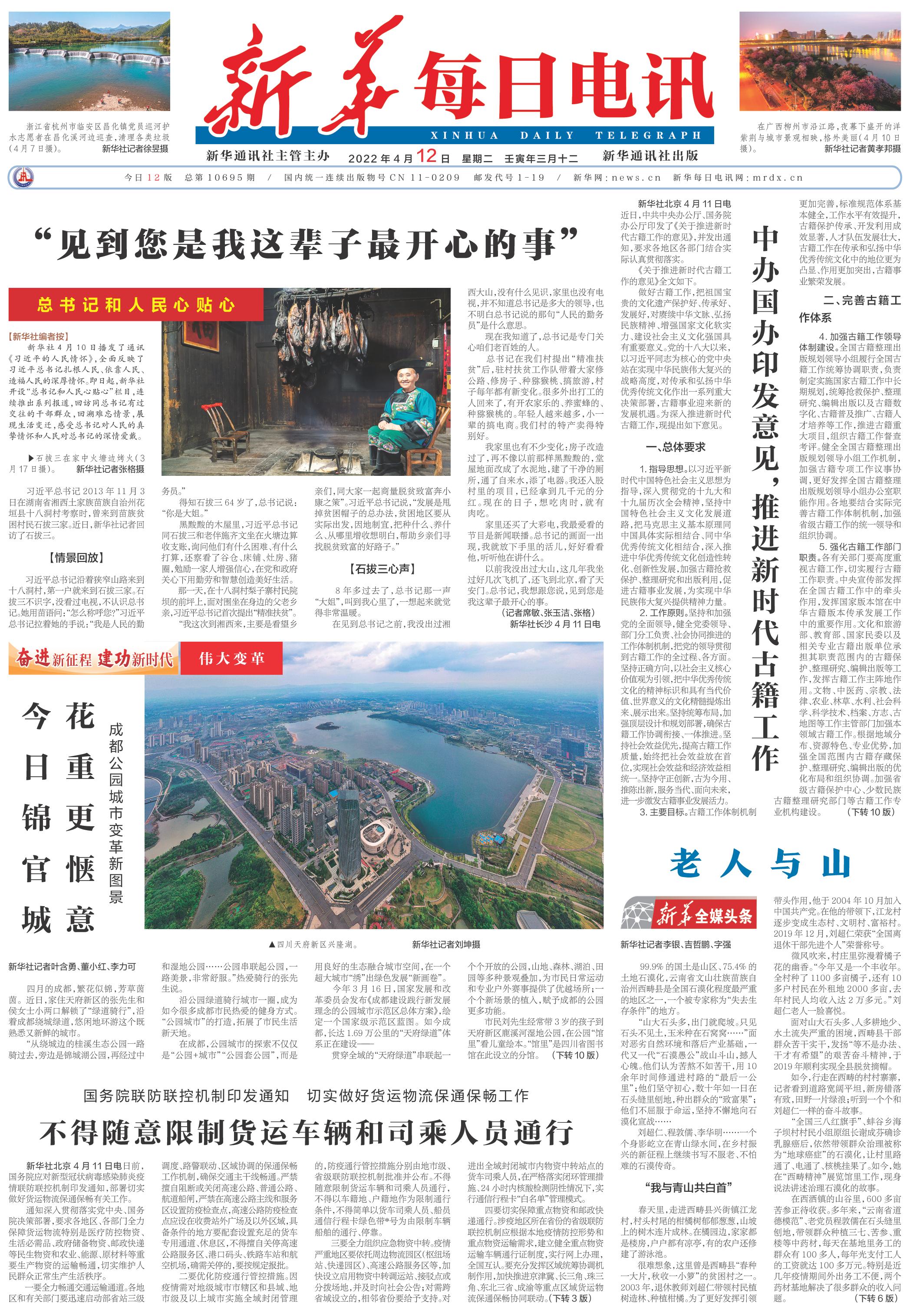 | ( 2022-04-12 ) 稿件来源:新华每日电讯 要 闻 |