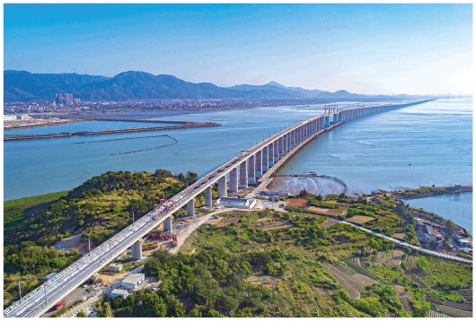 4月9日,由中铁十一局承建的新建福厦铁路湄洲湾跨海大桥无砟轨道施工完成,为后续铺轨贯通和通车运营创造了有利条件。