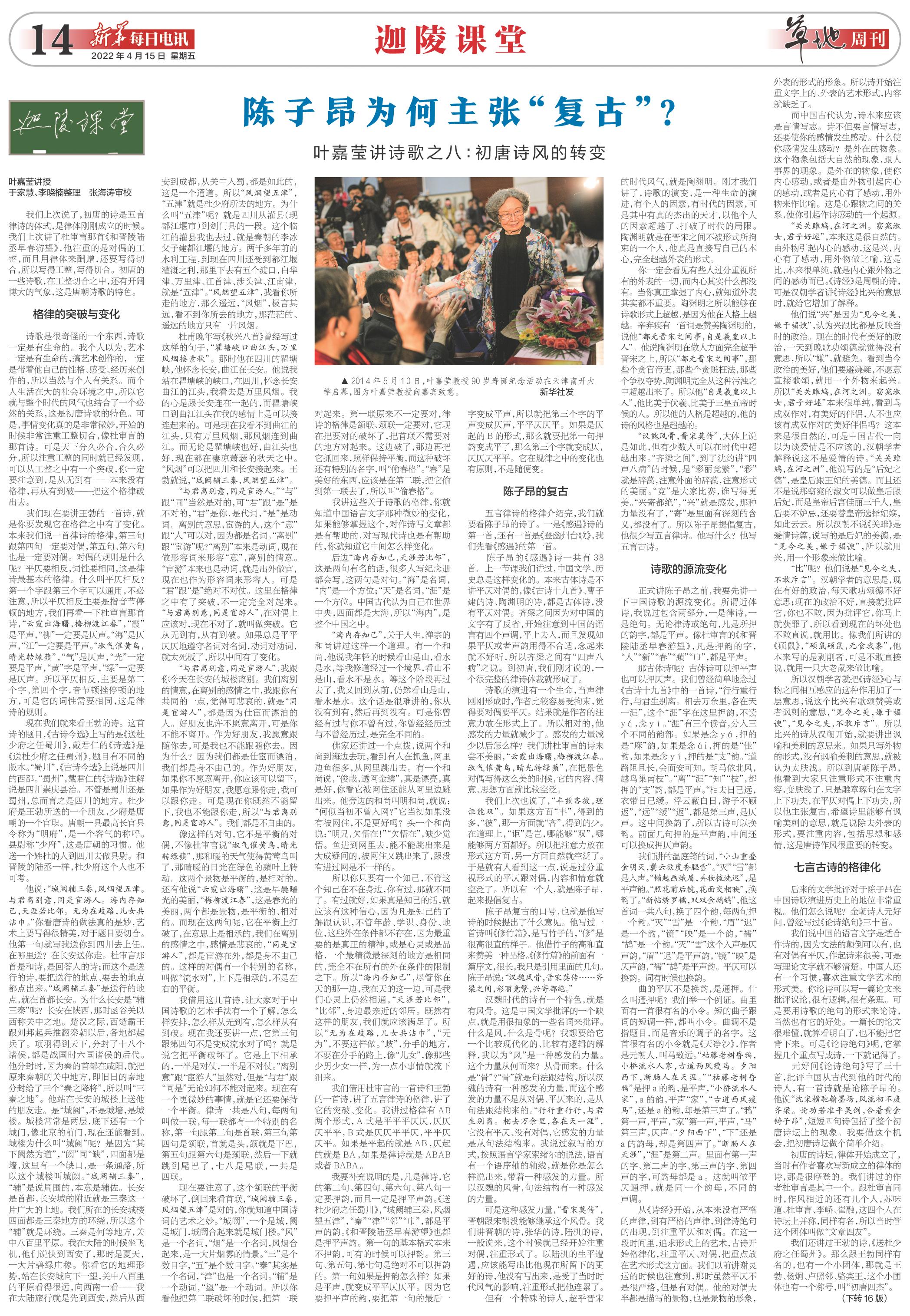 我讲这些关于诗歌的格律,你就知道中国语言文字那种微妙的变化,如果能够掌握这个,对作诗写文章都是有帮助的,对写现代诗也是有帮助的,你就知道它中间怎么样变化。