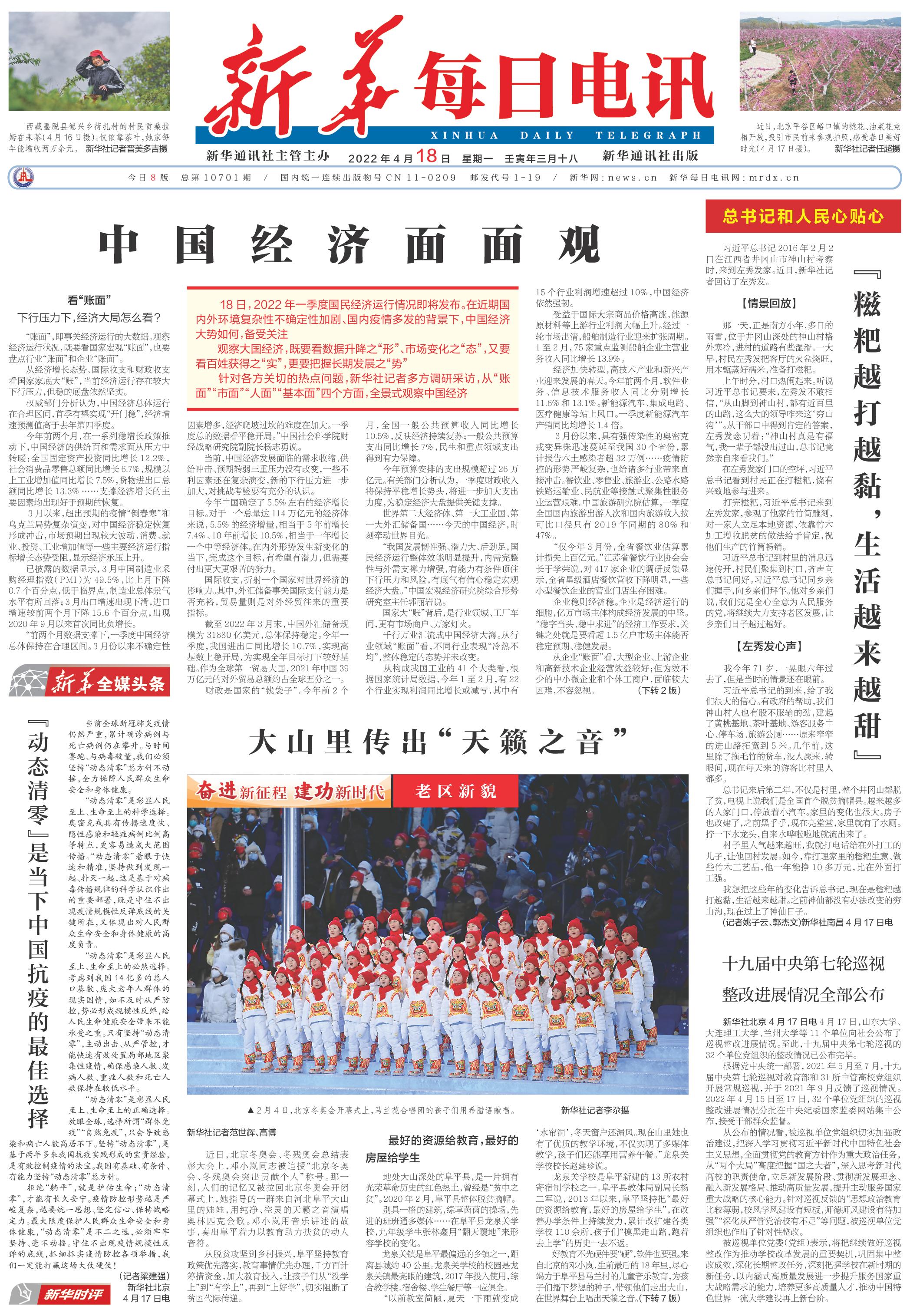 | ( 2022-04-18 ) 稿件来源:新华每日电讯 要 闻 |